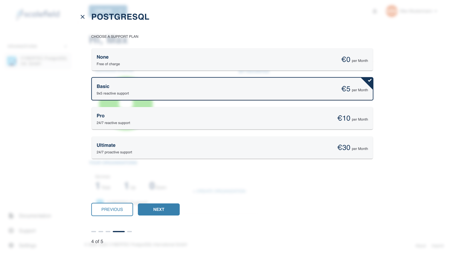 Wählen Sie schließlich einen Supportplan für Ihren Dienst aus. Die Supportstufen bestimmen den Umfang und die Reaktionsfähigkeit der von unserem Team geleisteten Unterstützung.