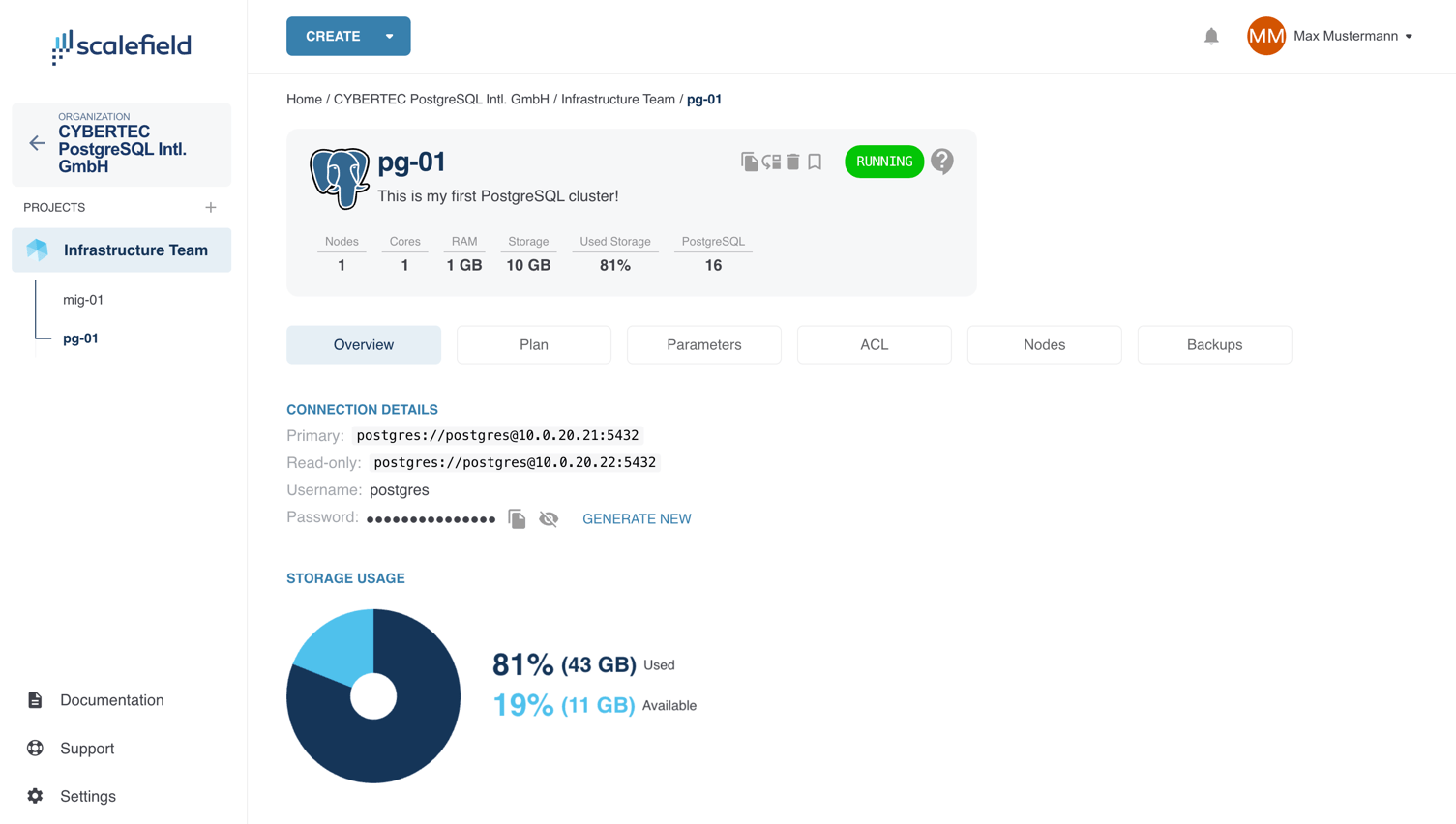 - Zugriff auf Verbindungsdetails sowohl für primäre als auch für Replikationsknoten, einschließlich: