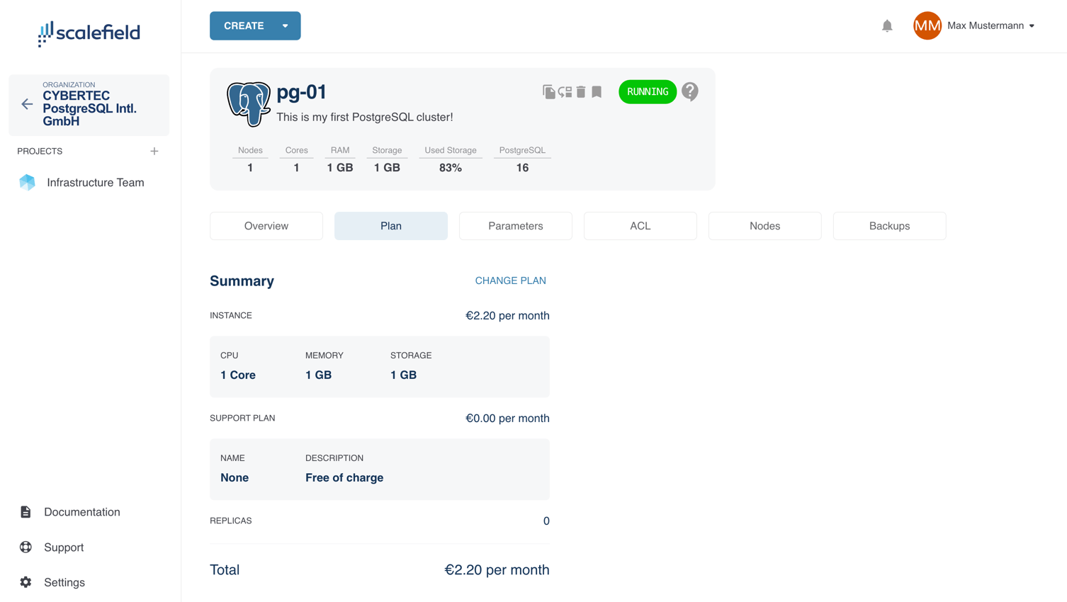 To make changes, click Change Plan. This opens a form similar to the one used during service creation, where you can modify CPU, memory, and other resource settings.